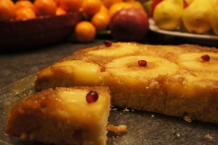 To people who say pineapple is not a holiday fruit, I say Mele Kalikimaka! I don’t eat pineapple very often, but there was a lot of it in my house recently and after eating bowls of it on its own, I decided it was time to dress up this juicy fruit. This pineapple upside down cake is a quick but pretty dessert with a lovely tropical twist. I’m on a bit of a pineapple kick.