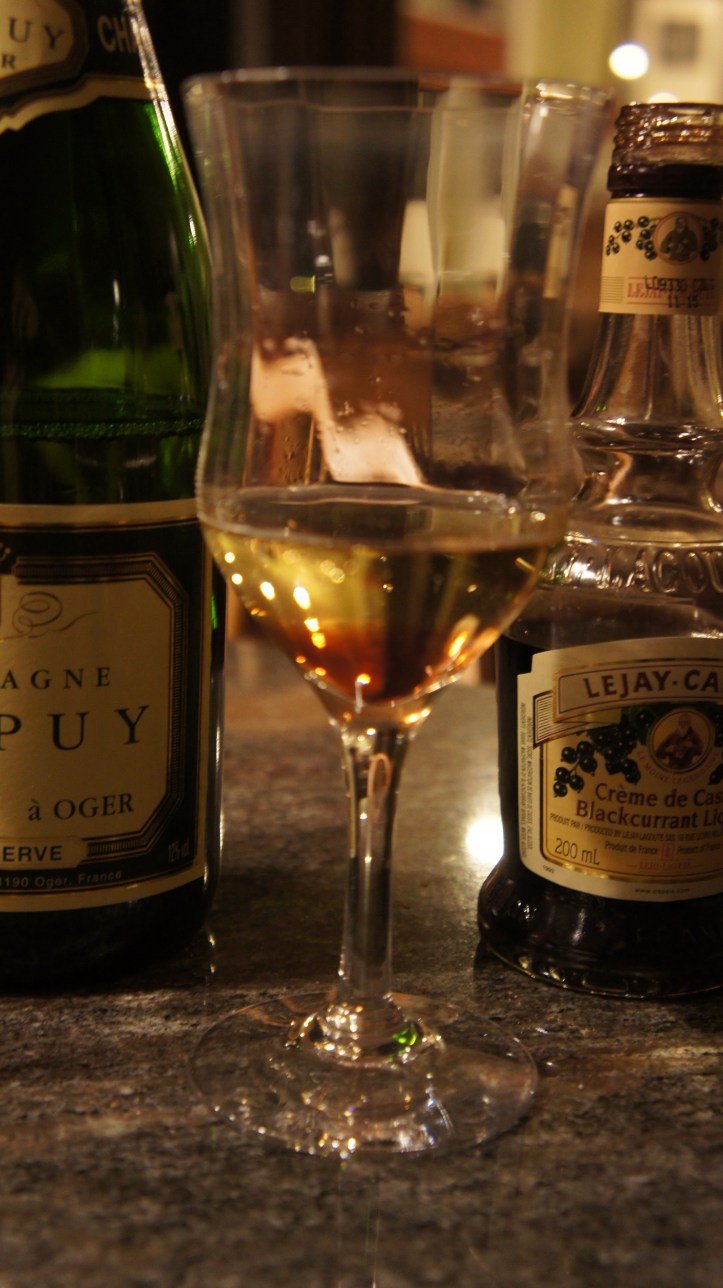 Why wait for New Year’s Eve to bring out the champagne? We popped open a bottle of bubbly to warm up with some Kir Royale this evening after tobogganing in the fresh snow. This classic French cocktail with a subtle fruity undertone requires only black current liqueur — crème de cassis –with a light white wine (such as Chablis). A Kir Royale uses champagne instead of the wine.