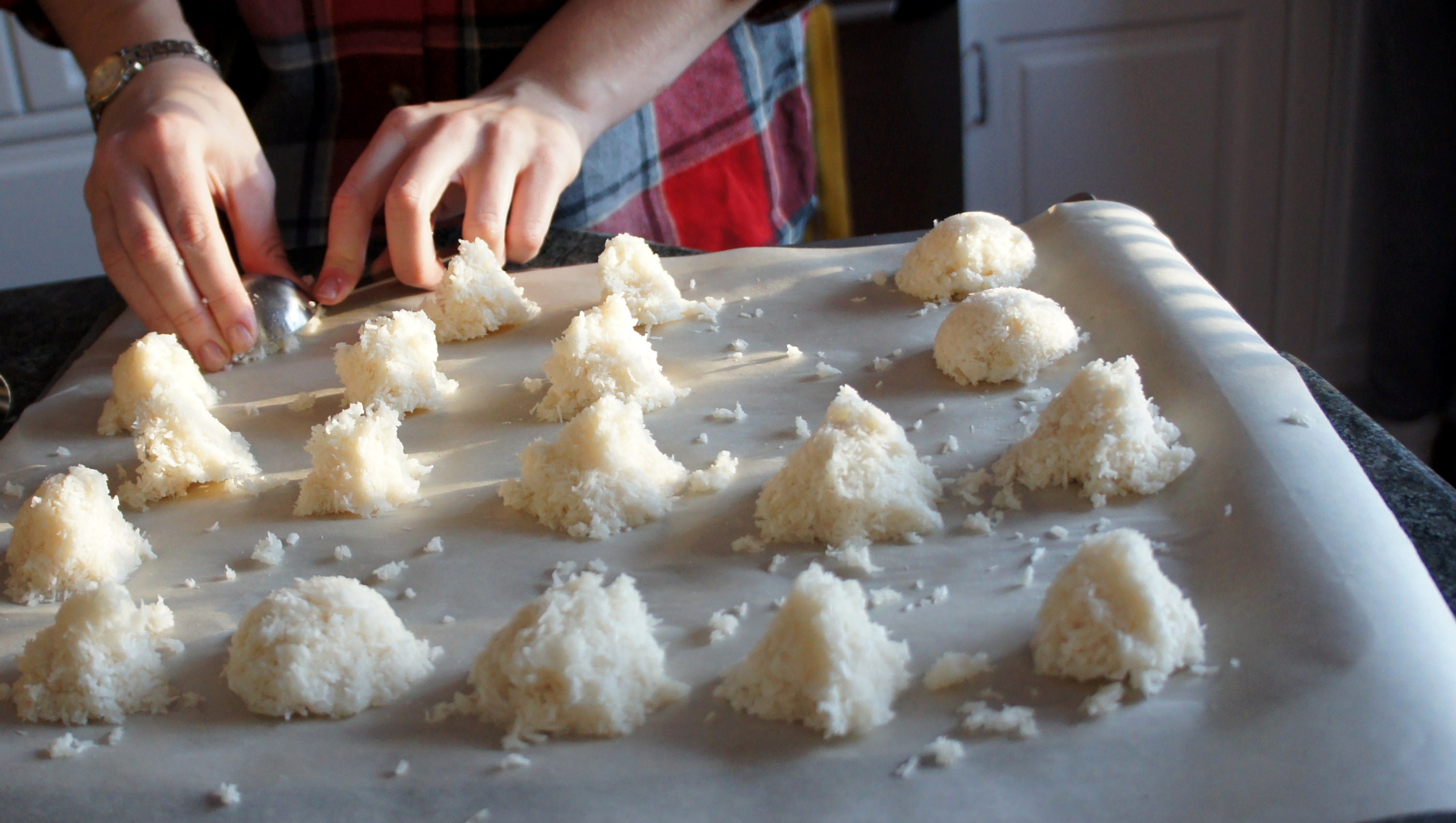 This was my first time making these little treats and I couldn’t believe how easy it was! I doubled the recipe and made one batch of plain coconut and one of the chocolate variety. They disappeared minutes after they were pulled out of the oven.