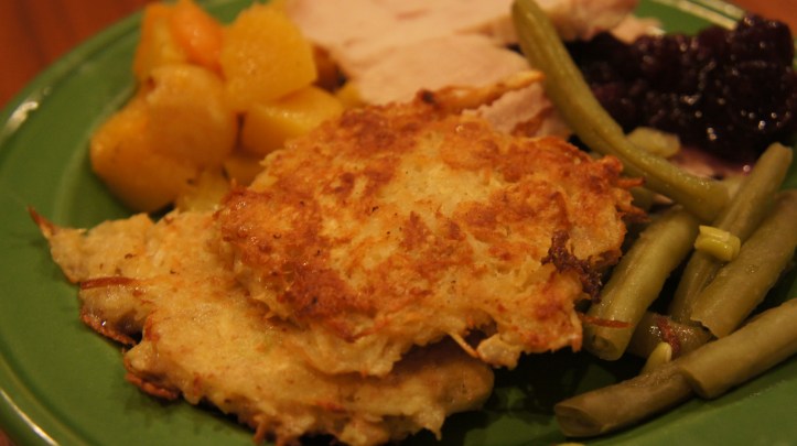 Potato-Parsnip Latkes (Recipe adapted from Gourmet, December 2002)