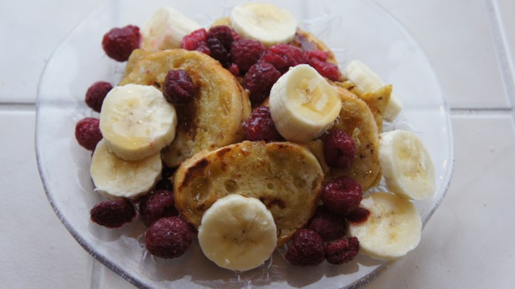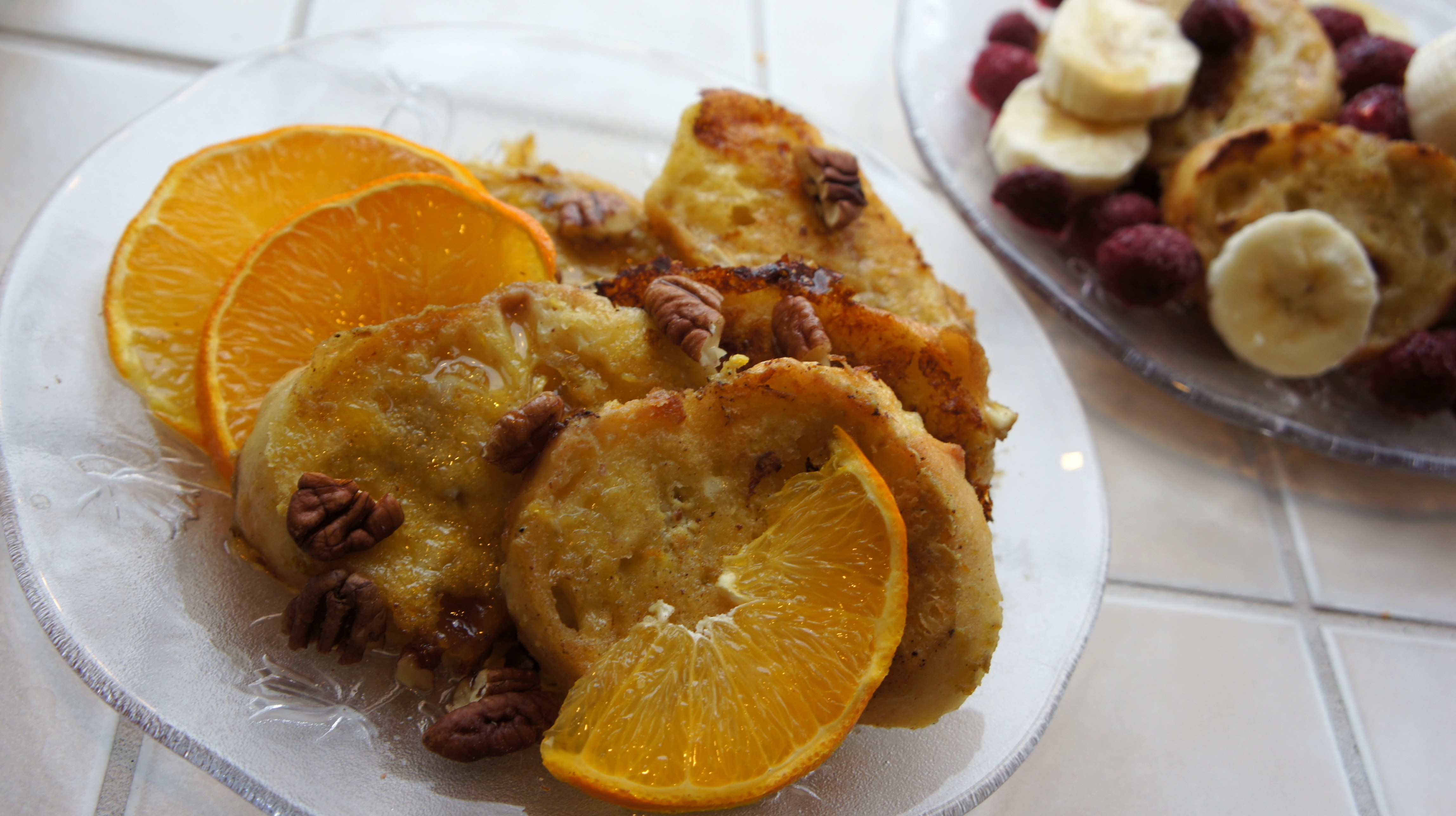 They all sound delicious, but I just went for an easy brekkie and made Pomegranate Orange French Toast with Orange Sauce and Pecans & Classic French Toast with Raspberries, Bananas and Maple Syrup. A super tasty way to start of the day! What are your favourite French toast combinations??