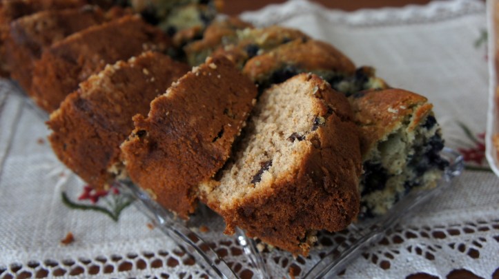 The original recipe from Gourmet magazine calls for cranberries (not blueberries), but I didn’t have any on hand so I went with another small, round berry. It was delicious and worked well as a substitute, but would use cranberries for presentation since they seem to “bleed” less colour into the cake than the blueberries. With cranberries, you get a creamy coloured cake with pretty red studs, but the blueberries turned the whole cake slightly purple-ish (definitely not ugly, so I would still recommend it!).