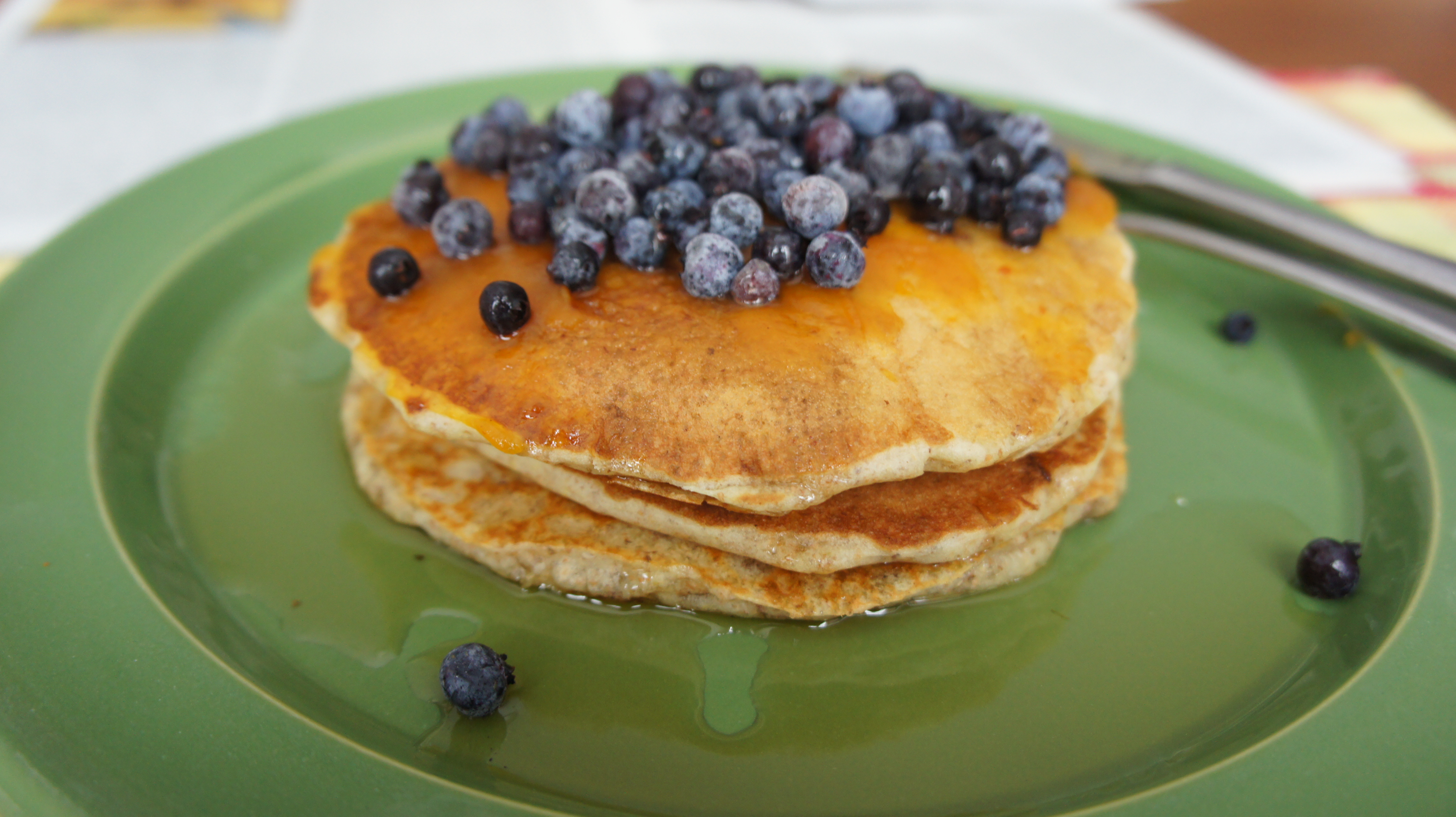 They say that breakfast is the most important meal of the day, but if the meal isn’t skipped altogether we tend to just grab something we can eat on the run. I’m not saying that we need to cook a feast every morning, but isn’t it nice to actually sit down and enjoy the first meal of the day? These pancakes are a cinch to whip up in the morning,they’re healthier than your average pancake, and if you make extra just freeze them for later…easy!