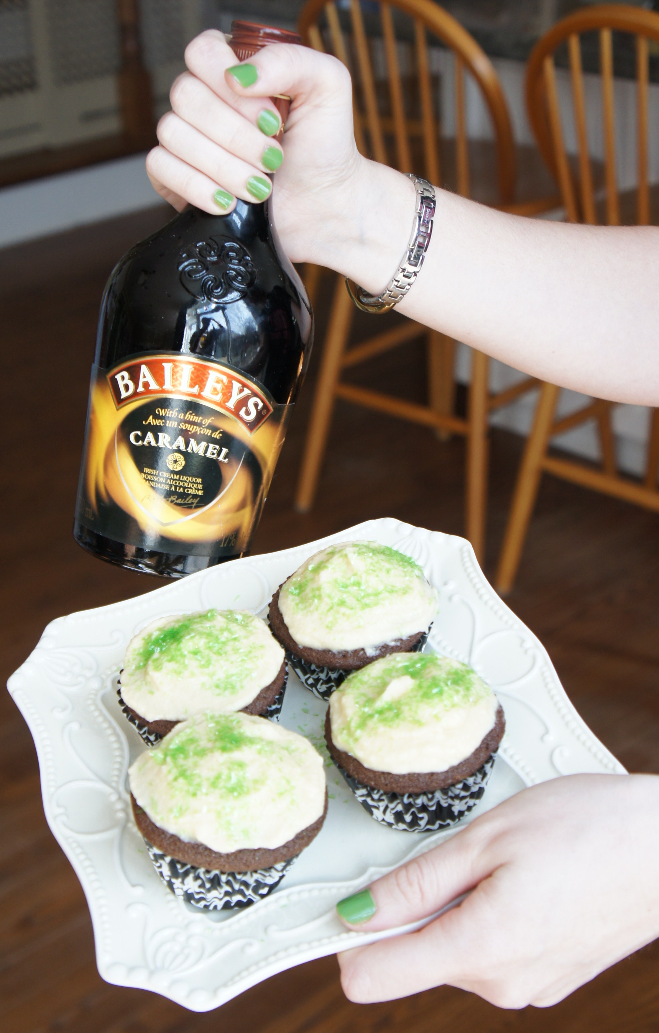Had to whip up some more chocolate Guinness goodness for St-Patrick’s Day! This time in the form of cupcakes with caramel Bailey’s frosting…