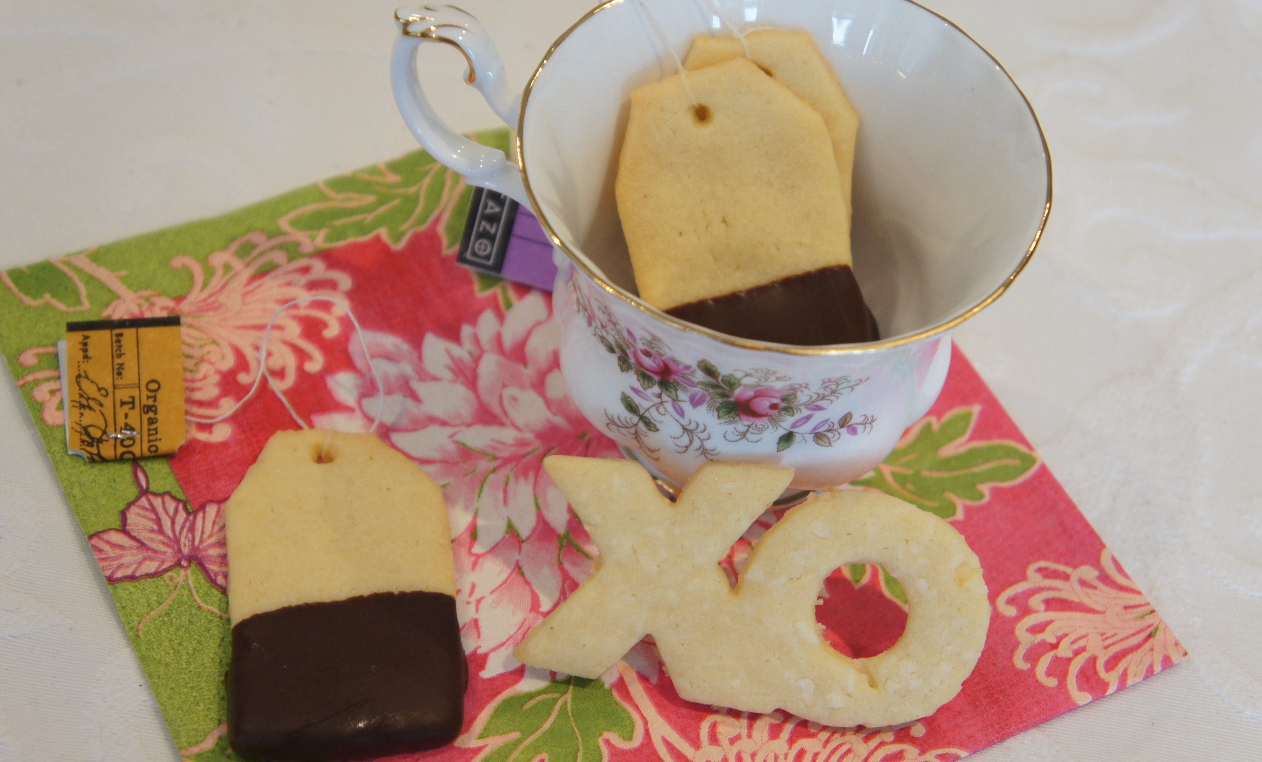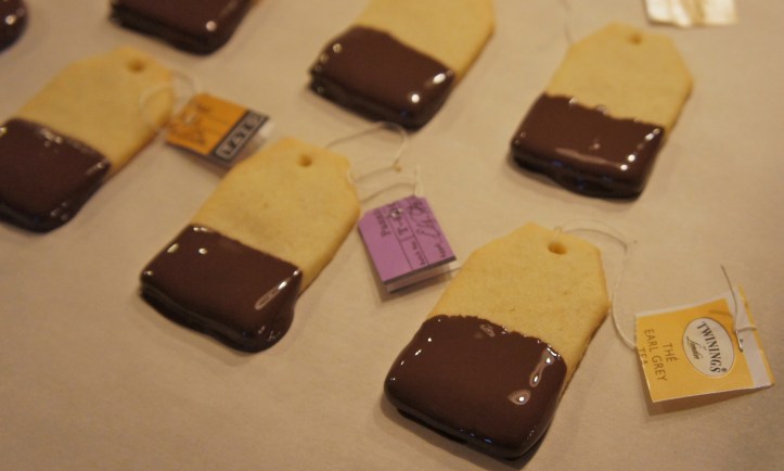 My super-cool and lovely friend Kaitlin provided the inspiration for these little tea bag cookies (thanks girlie!). Since I was already making a batch of sugar cookies (recipe here) at the time, that’s what I used for these ones, but how much fun would it be to actually make tea-flavoured dough? (A spiced Chai? Earl Grey, anyone? Martha Stewart also has a recipe for green tea shortbread that I’ve been wanting to try…any other suggestions? Let your creativitea flow!)