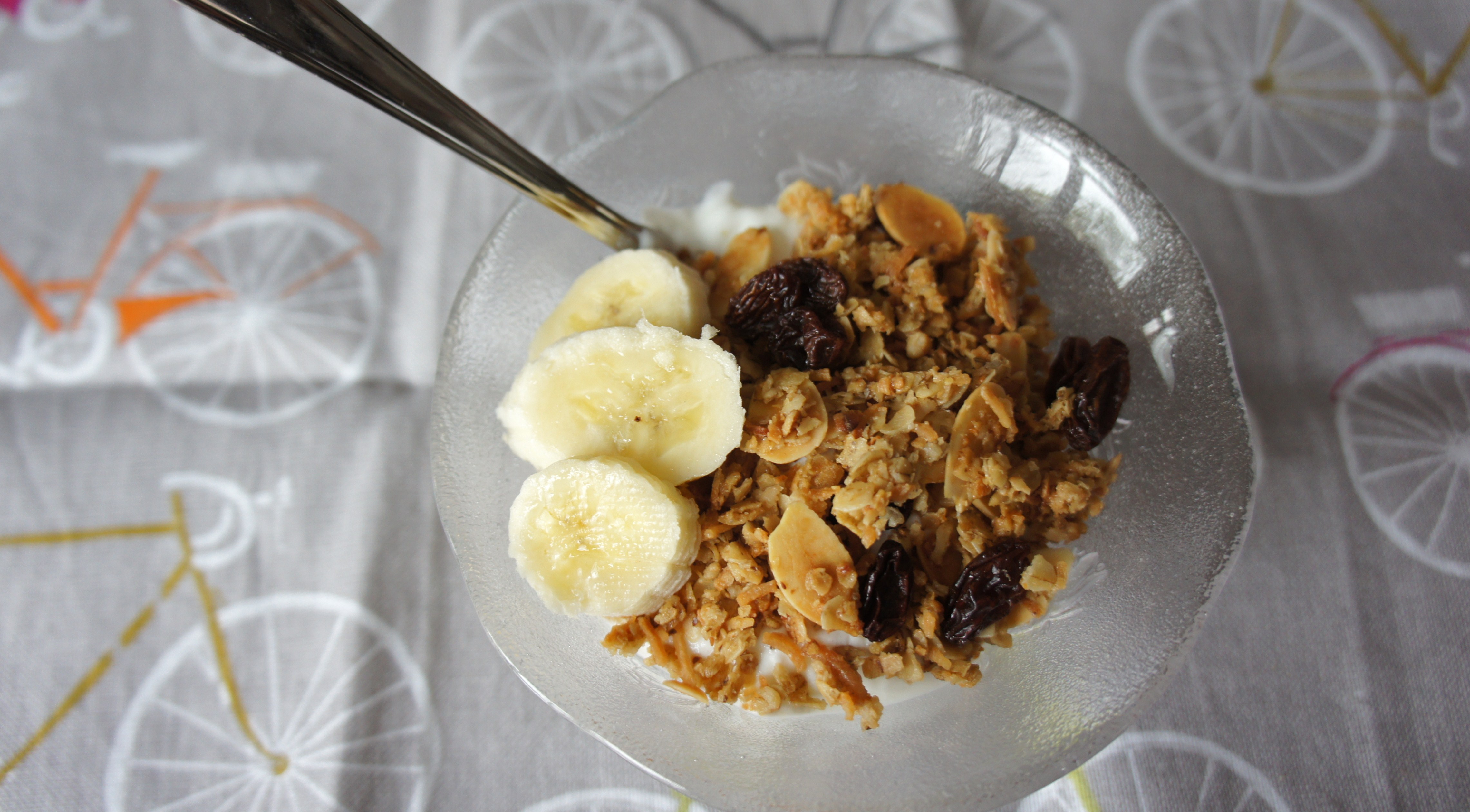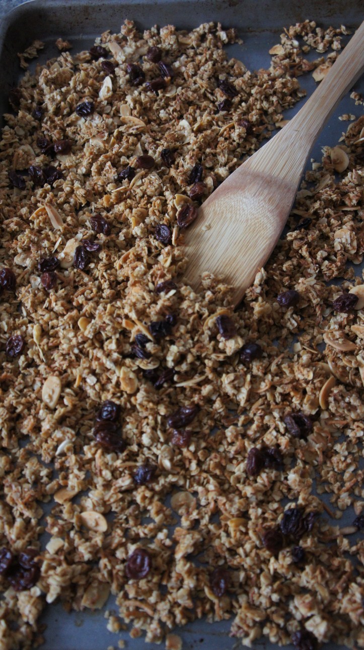 When my (amazing) Auntie C visited over Christmas, she brought with her a big bag of homemade granola. We meant to save it for breakfast, but someone opened the bag to start munching and before we knew it the whole thing was gone! I’d been meaning to make her recipe since then, and it did not disappoint.