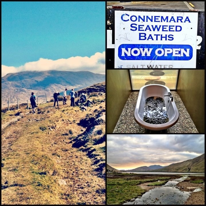 We arrived at the Shannon airport bright and early Sunday morning and hopped on a bus to Galway and then off to Oughterard. Since then we’ve been hiking from one B&B to the next, stopping in the little towns we pass through to see the sites, and for tasty dinners at the end of the day (with a pint of Guinness, of course!). The Irish hospitality has been absolutely lovely, and the rugged landscapes are stunning. I decided to travel light, so my laptop is at home and I won’t be able to upload any pictures until we return (the horror!). So, I’ll leave you with this snapshot from my iPhone savvy brother — the best way to soothe tired muscles after a few days of hiking through the Irish countryside? The Connemara Seaweed Baths should do the trick…