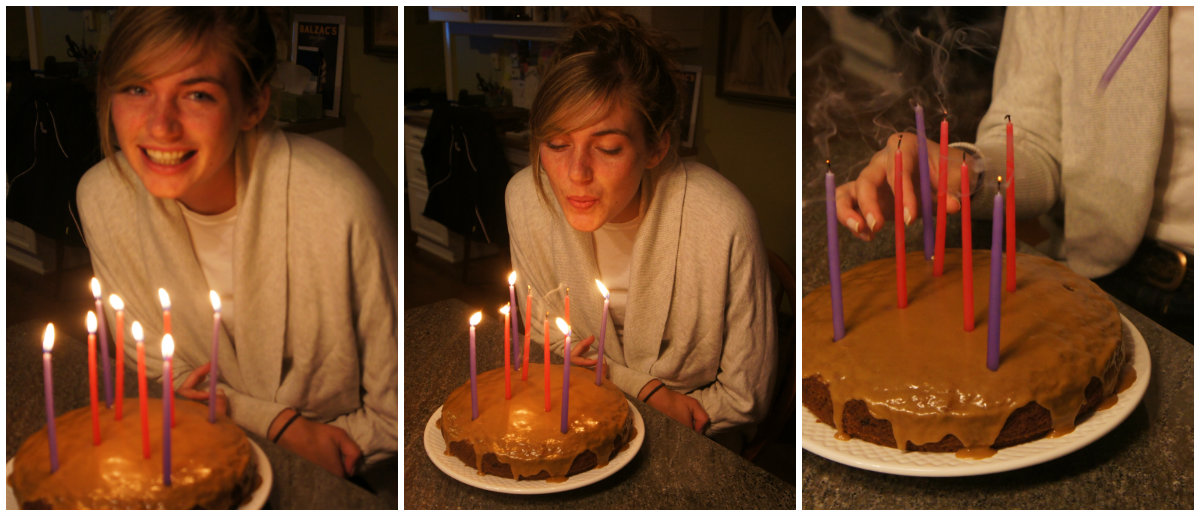 Dylan, one of my loveliest friends, celebrated her birthday at the end of August, and despite finding out her favourite desserts (cheesecake or crème brûlée, yum!) from her sister I was still sick AND we had a bunch of very ripe bananas, so this cake happened instead. Not that this was a bad thing, it was super delicious! (But Dylan, I owe you some crème brûlée.)