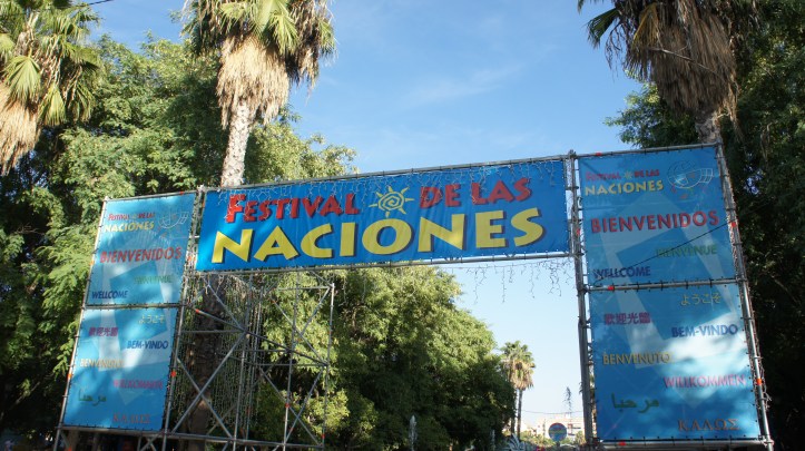 Plaza de España was absolutely breathtaking. The ceramics, the beautifully painted tiles, the stone work, the impressive building itself — it truly looks like it is out of a fairy tale. We were there on a perfect day and after finding “our” provinces painted around the plaza we wandered over to the Festival de las Naciones.