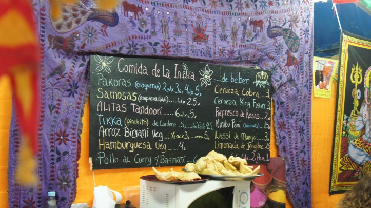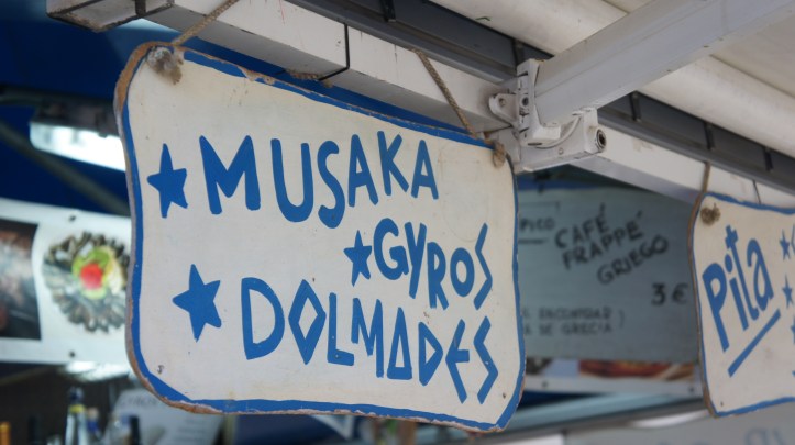Just past the plaza, the festival had a wide array of international goods: jewelry, clothing, incense, books, and of course, food. Despite the terrible omission of a Canadian food stall (Seville’s loss!), the diversity of the food being made in this one location was impressive. The entire area smelled of a delicious mix of spices, meats, and desserts — it was really hard to only pick a couple things to try! The “Cuban” stall was only selling rum based cocktails, that’s where the party was…and a dramatic fight that we witnessed. It was the perfect end to our long day of walking around town, and a great way to start off the night before hitting the town. Gracias, Sevilla!
