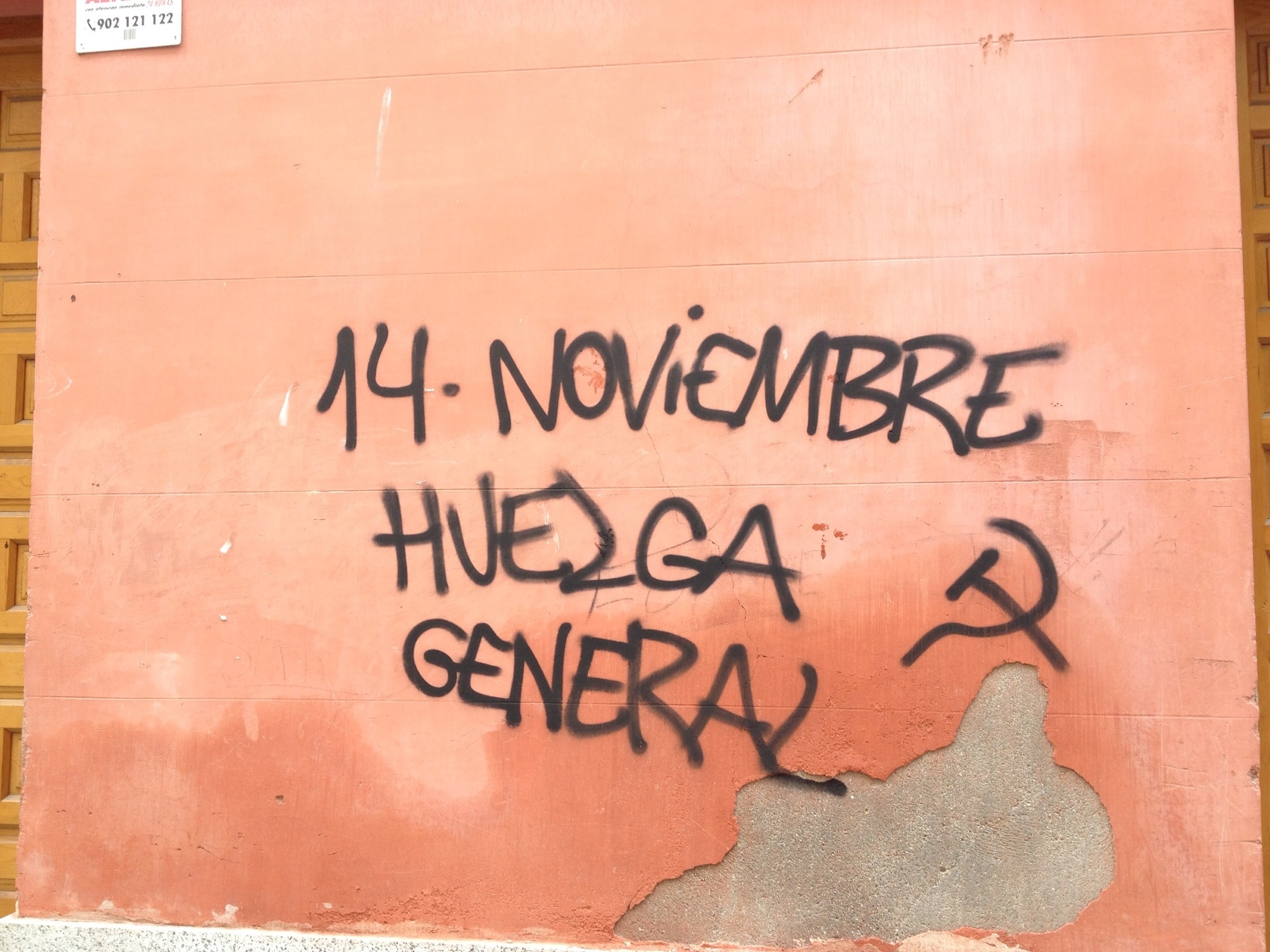 Huelga means strike– at first I thought people were just spelling the name of the city I’m living in, Huelva, incorrectly. I’m not really sure who’s doing all the striking; since I’ve been here, I’ve seen a small demonstration due to frustration about the economic crisis, high school and university students went on strike to protest cuts to education programs, and teachers are on a “work to rule” strike in most places. In any case, until ‘la crisis’ passes, it seems like people will have reason to huelga.