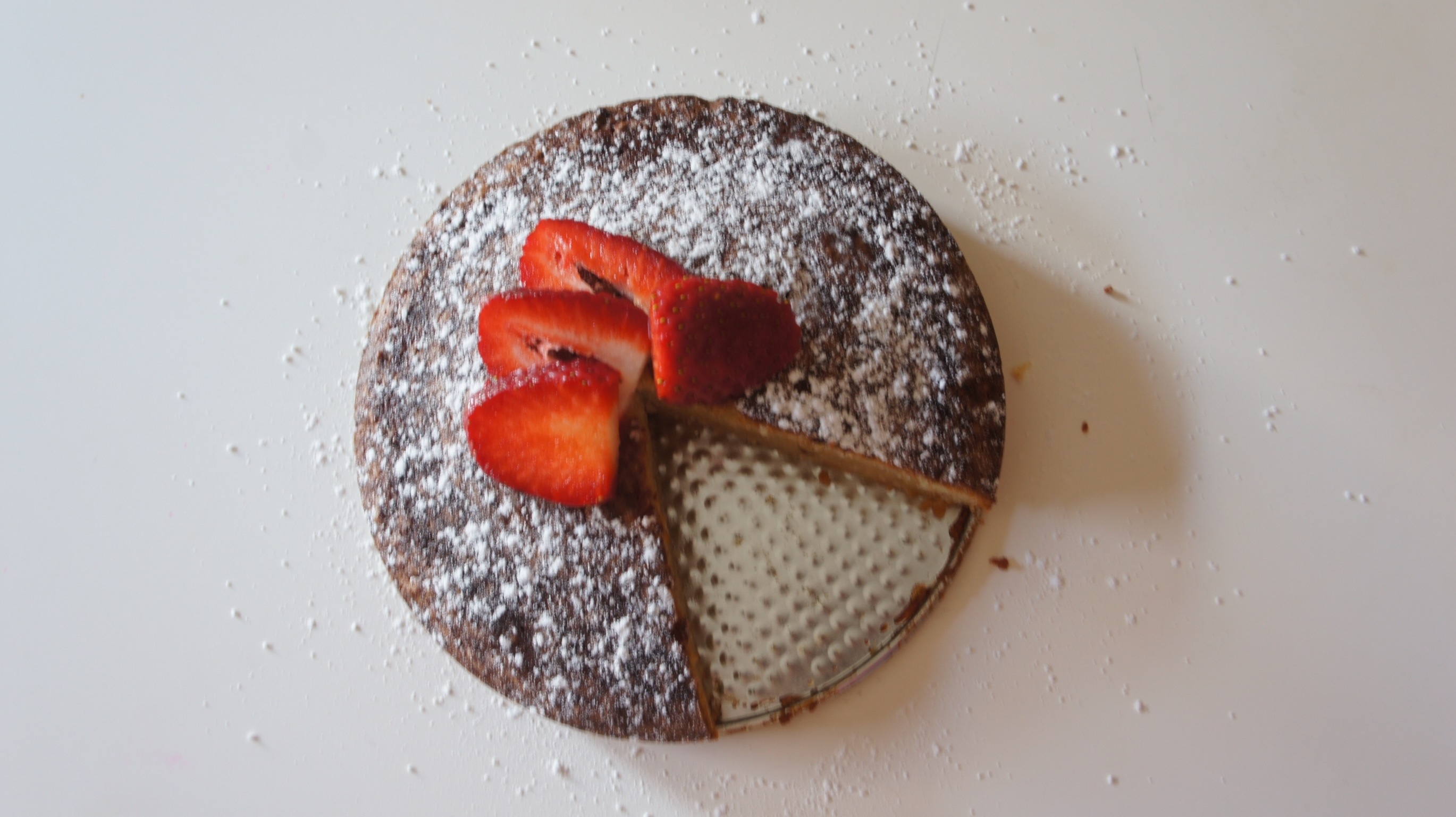 Tarta de Santiago, “Cake of Saint-James”, has been eaten since the middle ages in Galicia and is traditionally decorated with the cross of Saint-James. I opted to dust mine with icing sugar and top it with sweet Andalucian strawberries that are just starting to be seen at the market.