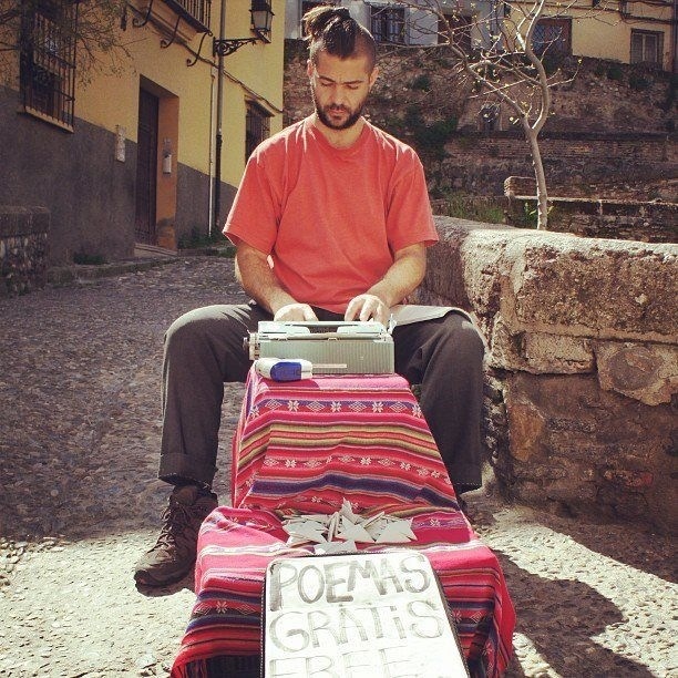 It was the perfect weekend for walking the old streets of the Albaicín, exploring the Alhambra, and finishing off the days with tapas, tapas, and more tapas. The atmosphere in the city was just lovely with music on every street corner and colourful art everywhere you looked. I particularly liked this guy handing out free poems at his typewriter. As if Granada needed to be more poetic!