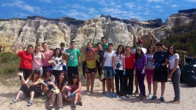 My ninth graders and I spent Friday cleaning a beautiful beach, Cuesta De Maneli, in Mazagon. Although the area itself is stunning– a boardwalk winds through sand dunes to the beach below– there was a surprising amount of trash. We filled over twenty big garbage bags (as the students squealed in disgust when they found increasingly yucky things) and although it was hot, stinky work, the day went by quickly and we rewarded ourselves with an afternoon spent in the ocean and siesta-ing on the beach. Not bad for a school field trip…