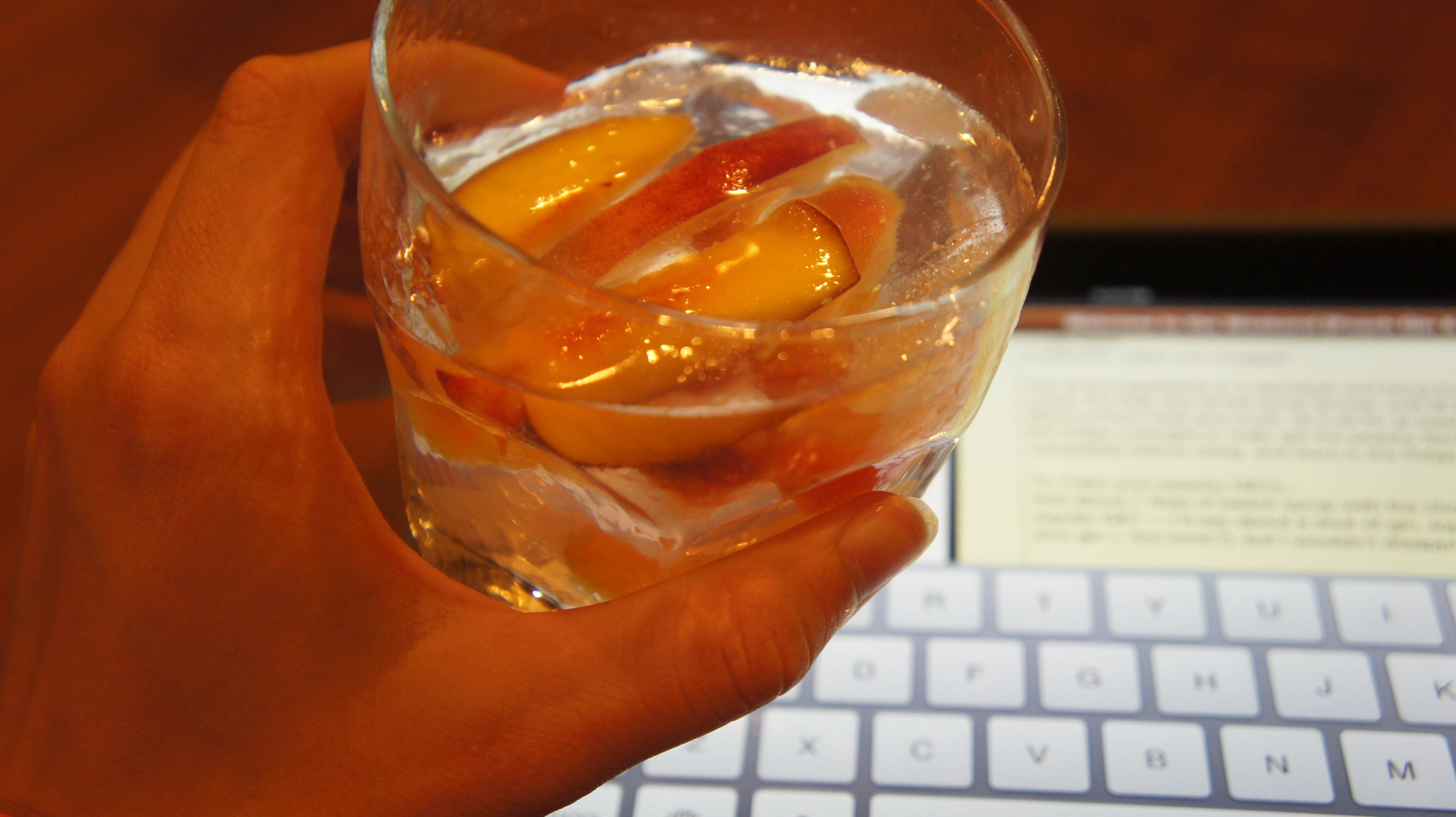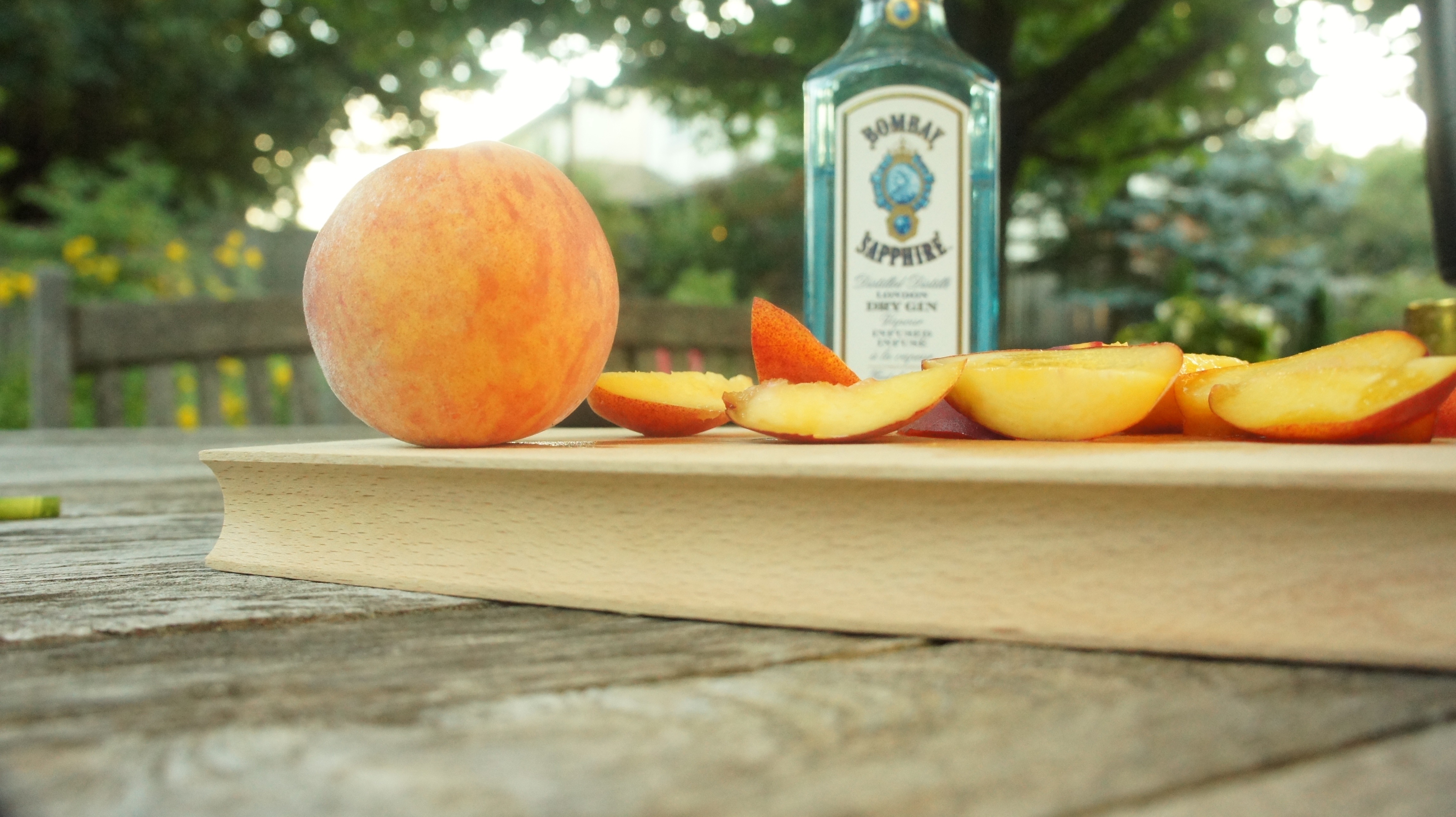 I usually stick to some lime or maybe cucumber if I add anything to the classic cocktail, but I wanted to sip on peach season.