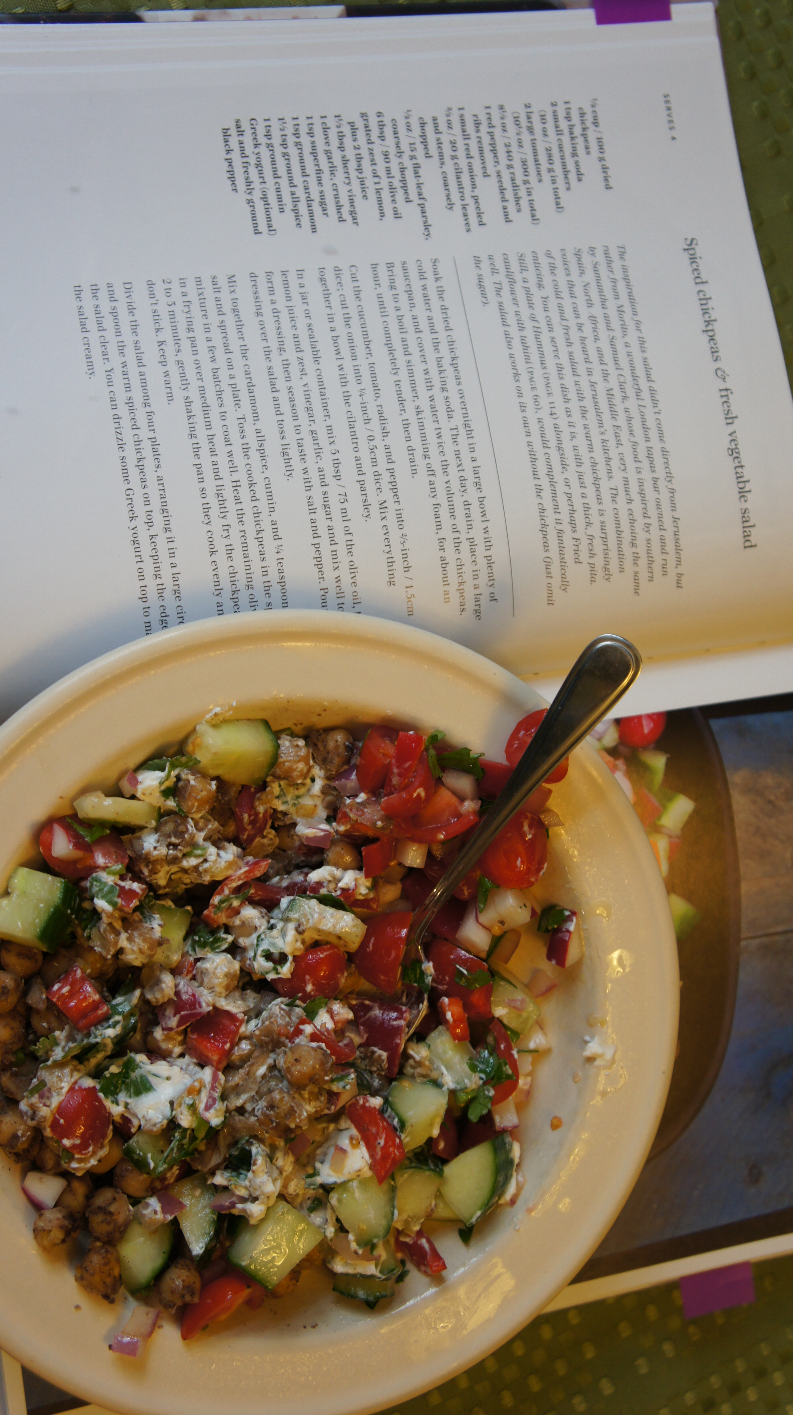 Spiced chickpeas & fresh vegetable salad (from Jerusalem)