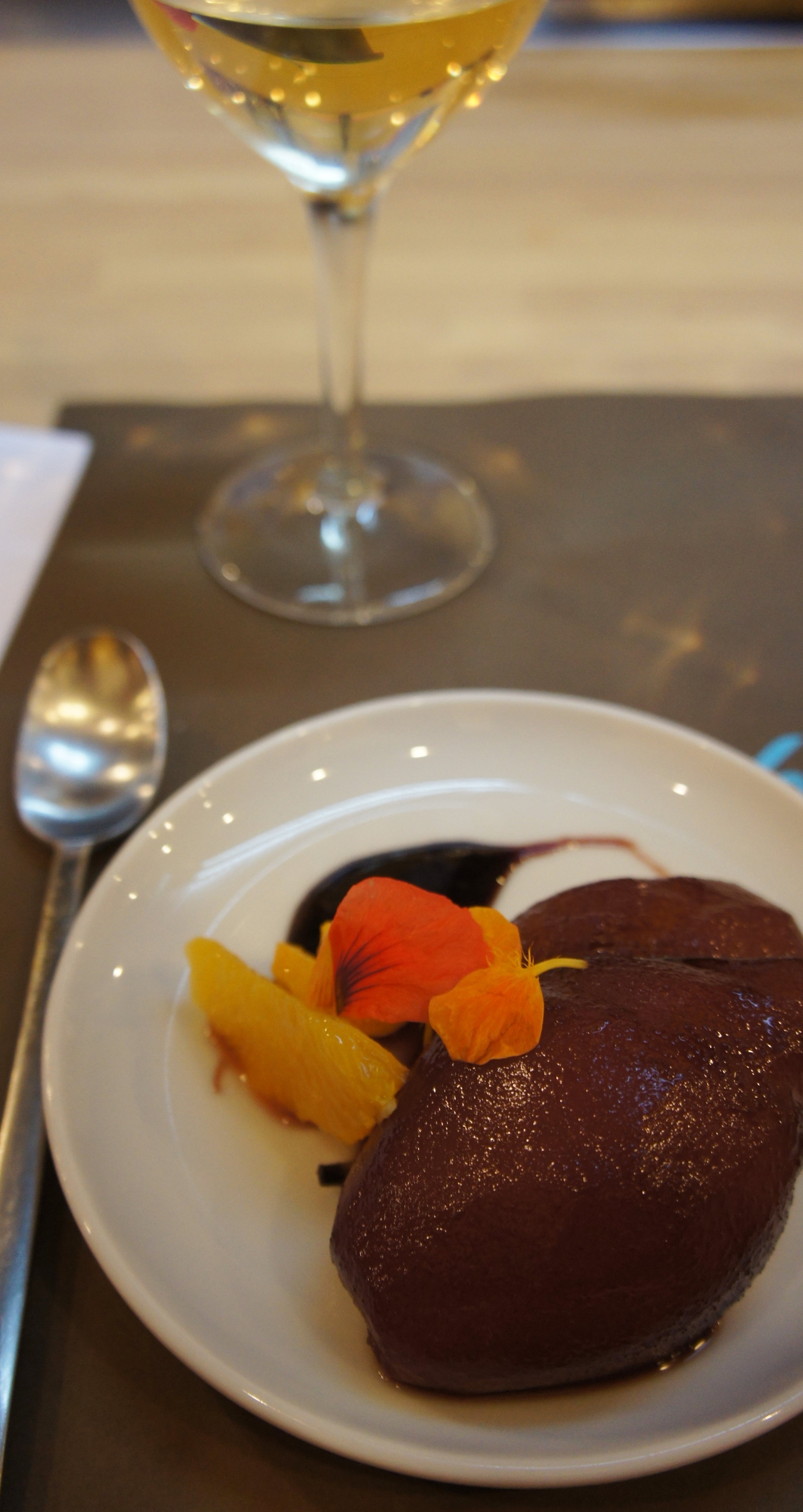 Serve the poached pears and bathe them with a little of the wine caramel. ¡Que aproveches!