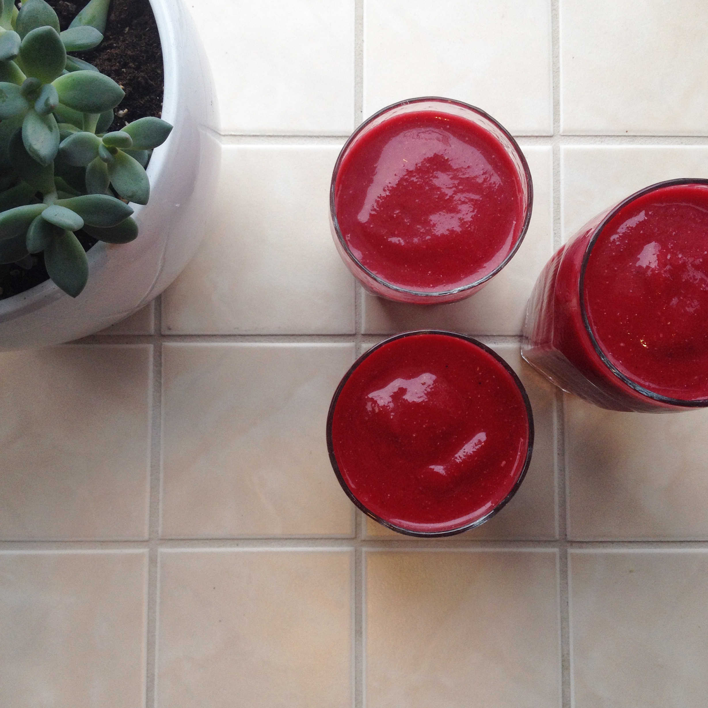 I was a bit of an early riser and attempted to get up after nights out for runs down by the ocean, so I ended up being hungry before the rest of that gals were awake. Kylie sweetly accommodated me with smoothies, and reminded me of the great little tidbits that are hemp hearts! It seems silly to include a “recipe” for a smoothie, since I generally just throw whatever I have on hand in to a blender. But in case you’re not sure about putting beets into your smoothie rotation, here’s a suggestion. The “recipe” is totally tweak-able to your liking, of course.