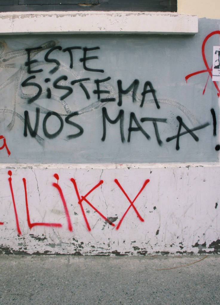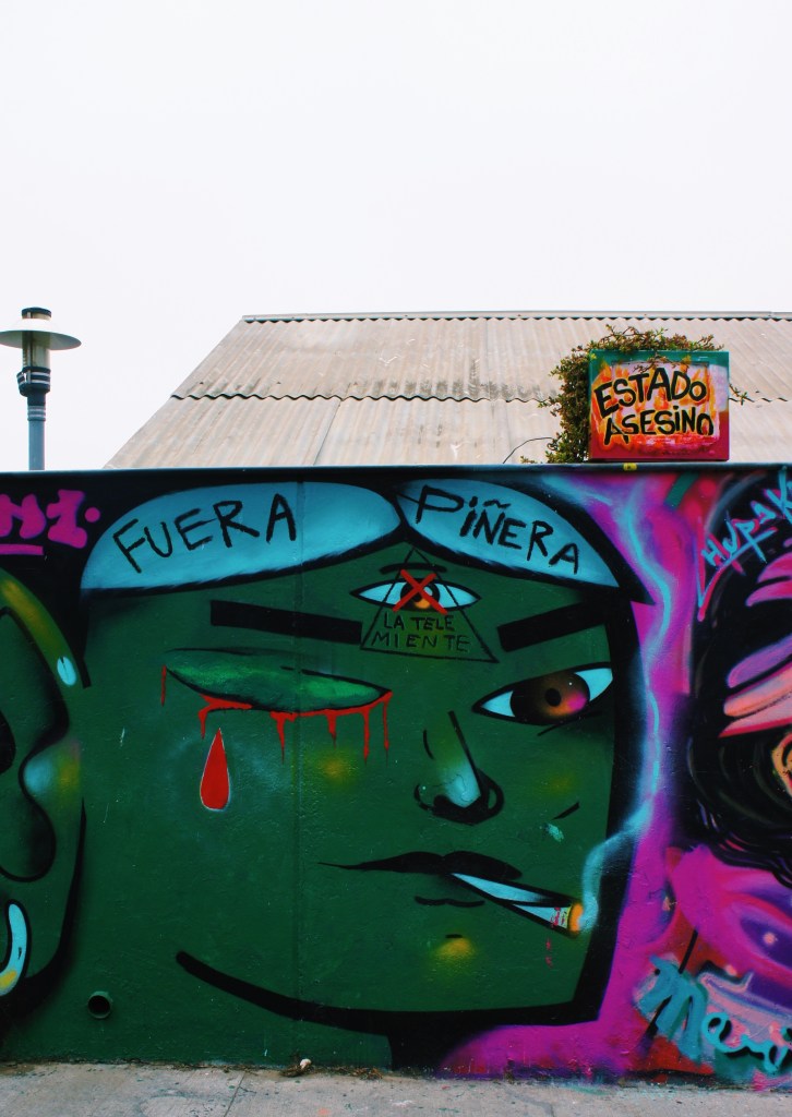 In Valparaíso, the seaside city famous for its vibrant street art, many murals had been altered to show people with bloody eyes, and countless bloody eyes have been painted around the country in reference to the hundreds of Chileans who have suffered eye trauma or been blinded and maimed by the police. Over twenty people have been killed, and thousands seriously injured. Last week, Amnesty International reported that Chilean military and the carabineros (national police) are violating human rights by intending “to injure demonstrators in order to discourage protest, even to the extent of using torture and sexual violence against protesters.” At the same time, the Valparaíso-based feminist collective LASTESIS has gone viral with their performance of “Un violador en tu camino” (“A Rapist in Your Way”) – decrying violence against women and the human rights violations happening in Chile. The song has now been performed all over the world (here’s an English explainer).